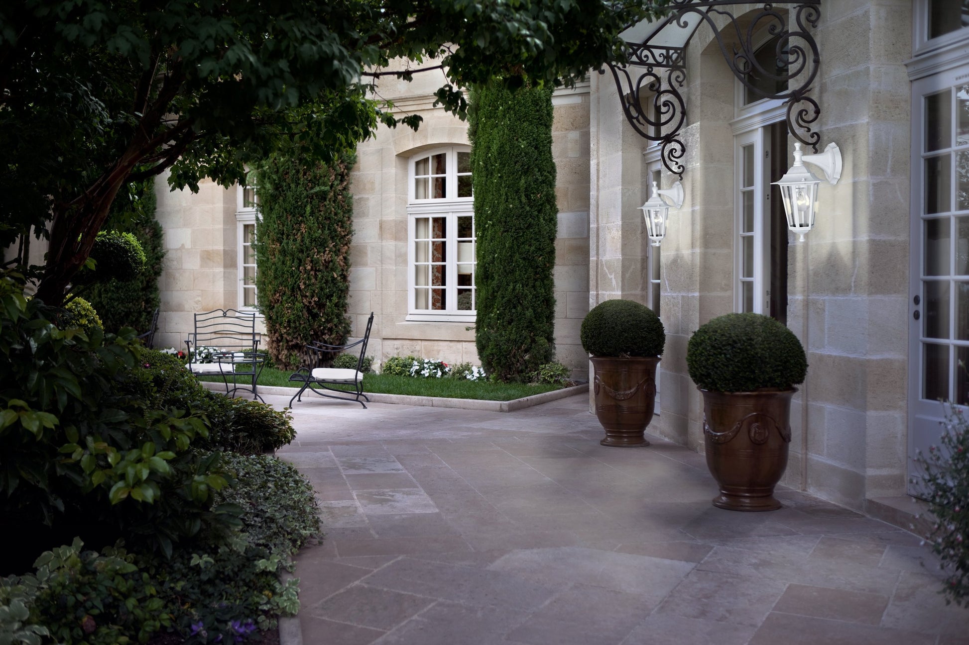 The LATERNA 5 wall light for outside looks like a hanging lantern. It has a white body made of aluminium and has clear glass panels. This product can be used outdoors because it is protected against water spray with an IP44 rating. This light has a traditional design that will look great in your outdoor area. It works well for houses with a classic or artistic style. The lightbulb in the picture is not part of the package. The product has a lamp holder called E27 and it needs a lightbulb that fits into E27.
