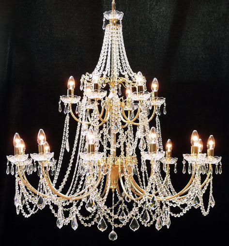 The Fantastic Lighting 824/12+6 Andrea Two Tiered Crystal Chandelier is decorated with many beautiful crystal beads, balls, and pear-shaped crystals. This item is made with high-quality gold metalwork from France and can be used in many different types of indoor spaces.