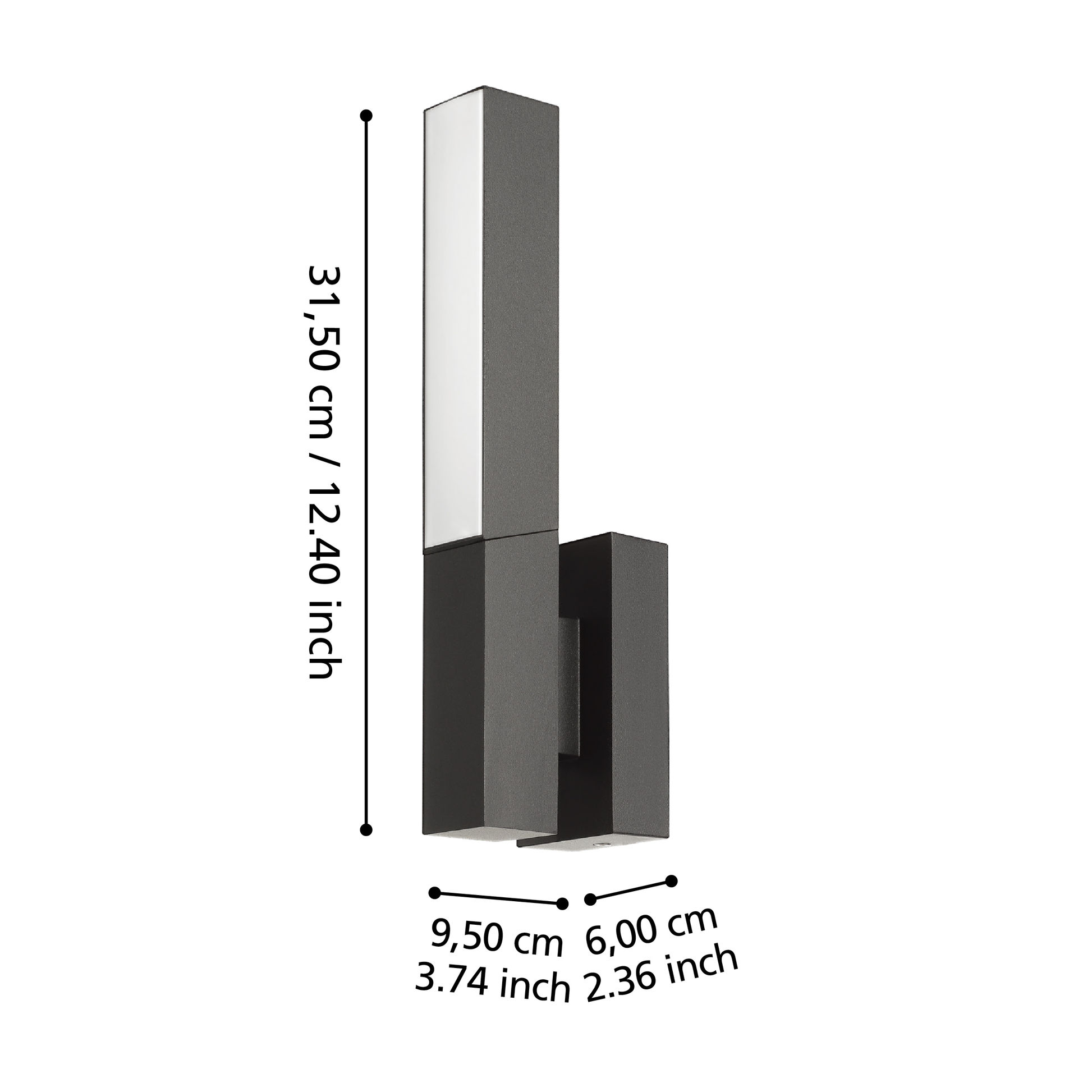 Black and white plastic wall lamp with IP44-rated LED outdoor garden lighting.
