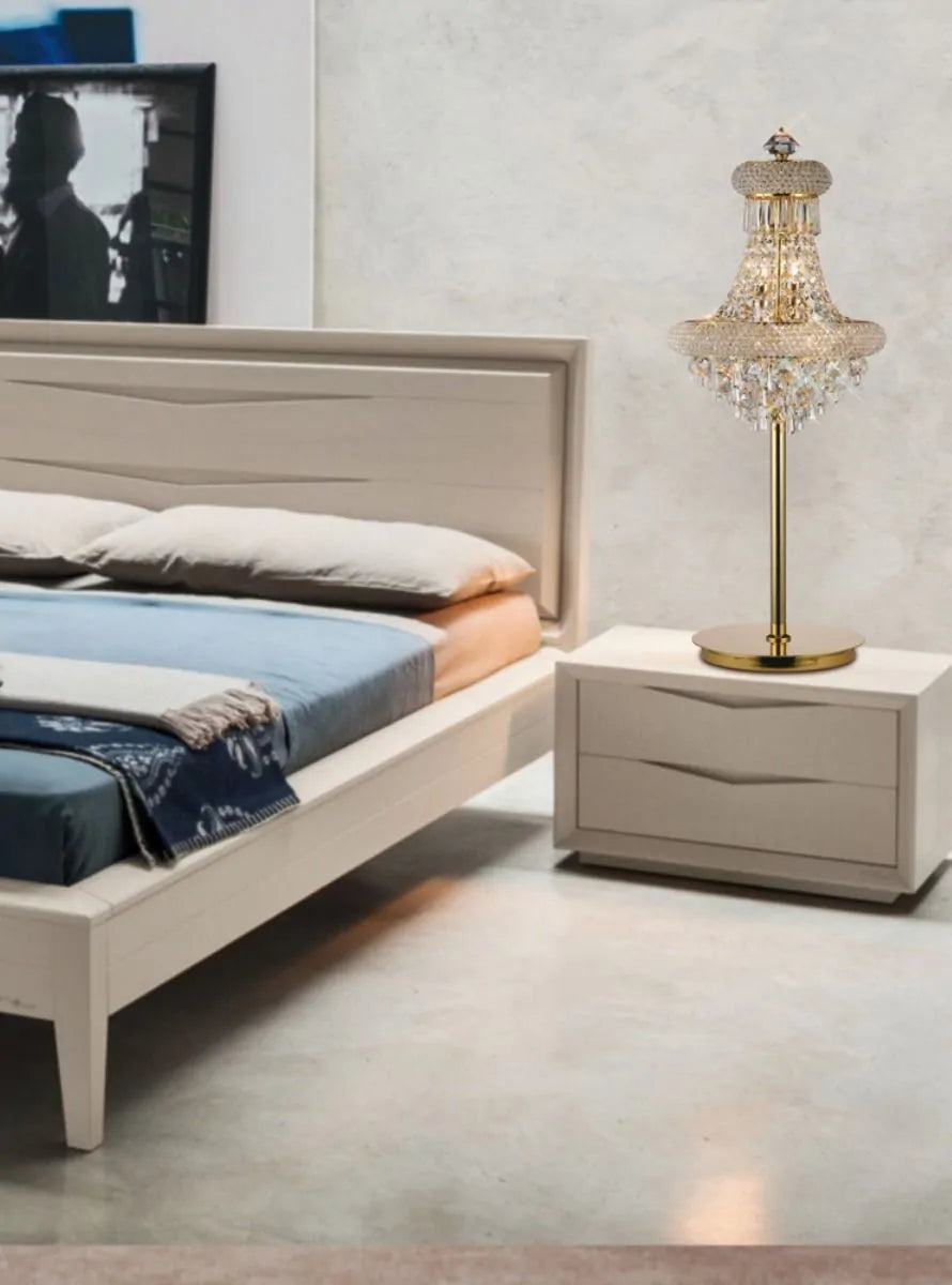 This beautiful Alexandra 5 light table lamp has a romantic design inspired by traditional lighting. It has a shiny French Gold finish and a modern and stylish look. It is made up of round and hexagonal droplets and has a large curved ring of Asfour crystal beads that are placed close together. This piece is perfect for a variety of tables, desks, and bedside tables. It is part of a beautiful and impressive range. The five small lamps behind the crystals make your home shine with bright light.