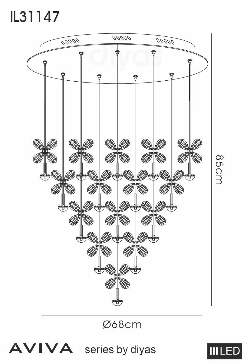 Aviva LED Crystal Pendant 28 Light 4000K Polished Chrome Frame Diyas IL31147