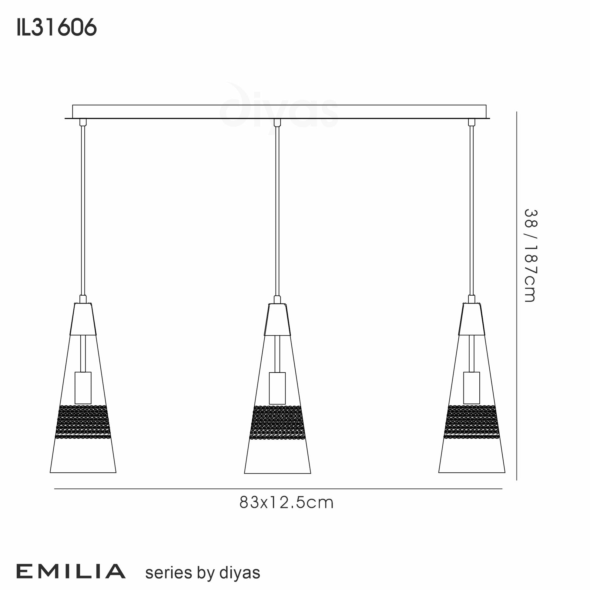 Diyas IL31606 Emilia 3 Light E14 Linear Polished Chrome Crystal Pendant