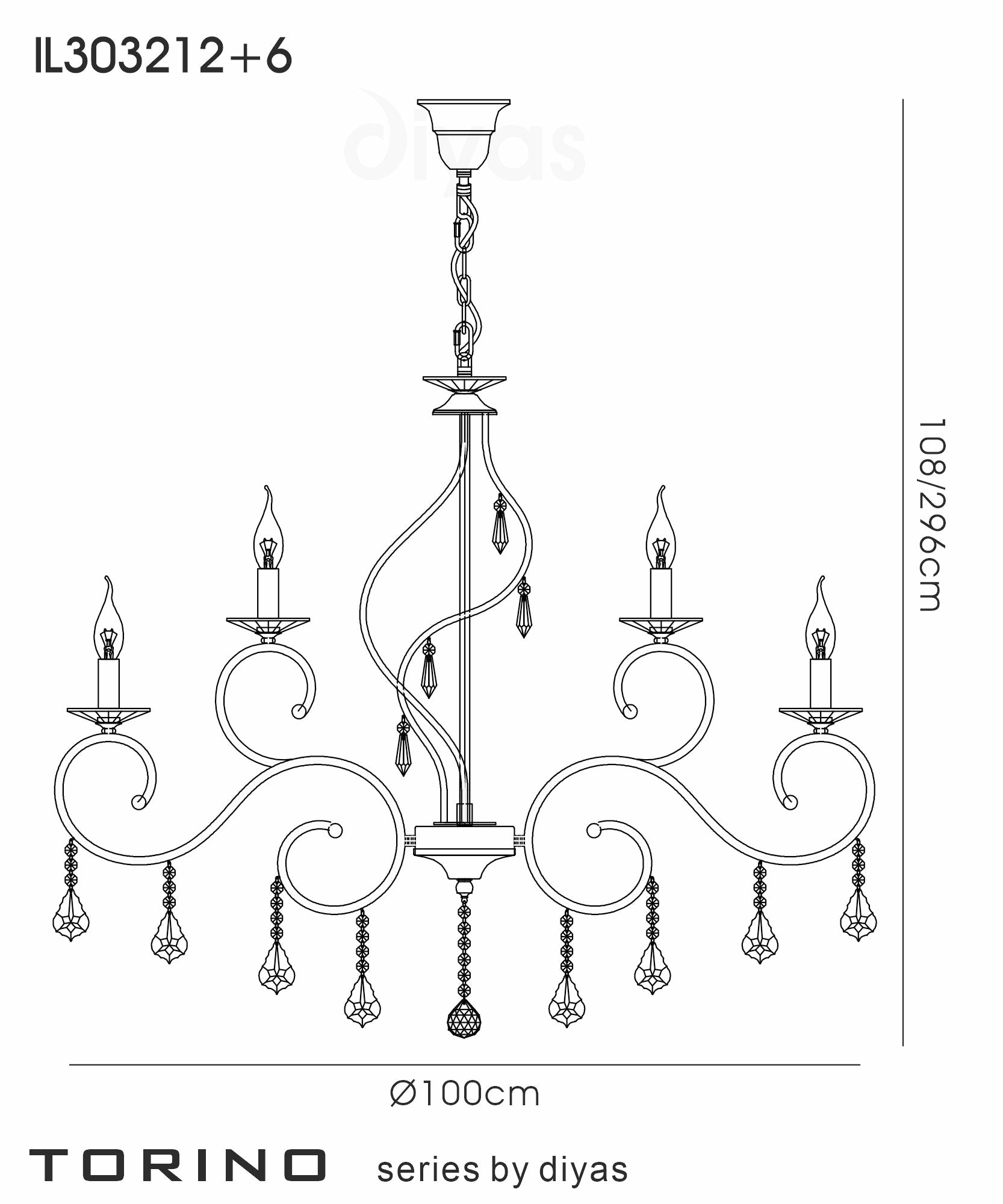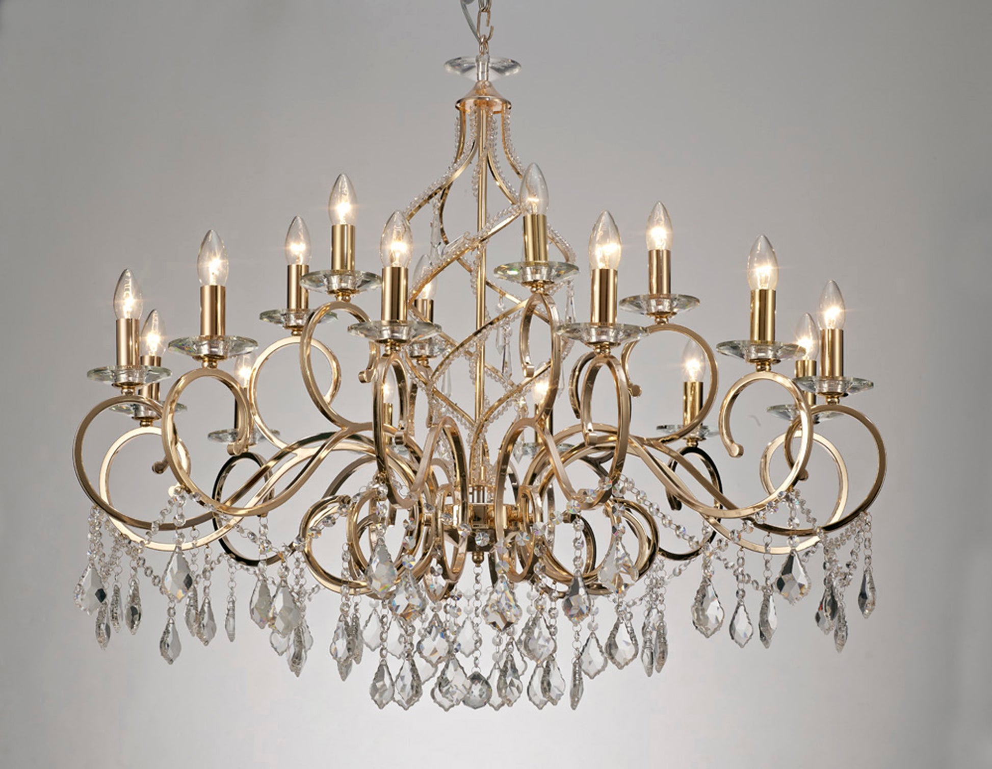 Torino Crystal 18 Light Chandelier by Diyas IL303212+6 with French Gold Frame